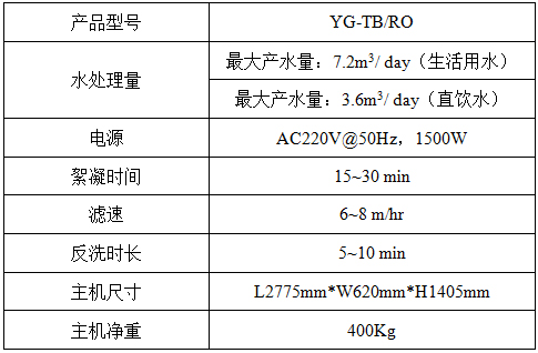 YG-TB/RO微型水厂采用加药混凝、平流管沉淀、超轻滤料过滤与RO膜过滤相结合的处理工艺,能有效降低原水浊度、有机物、离子污染物,并去除病原微生物。处理后的水可满足洗碗、洗菜、沐浴、浇花、冲厕等生活用水需求,亦可直接饮用。适用于家庭、宾馆、学校等小规模场所安全用水。
