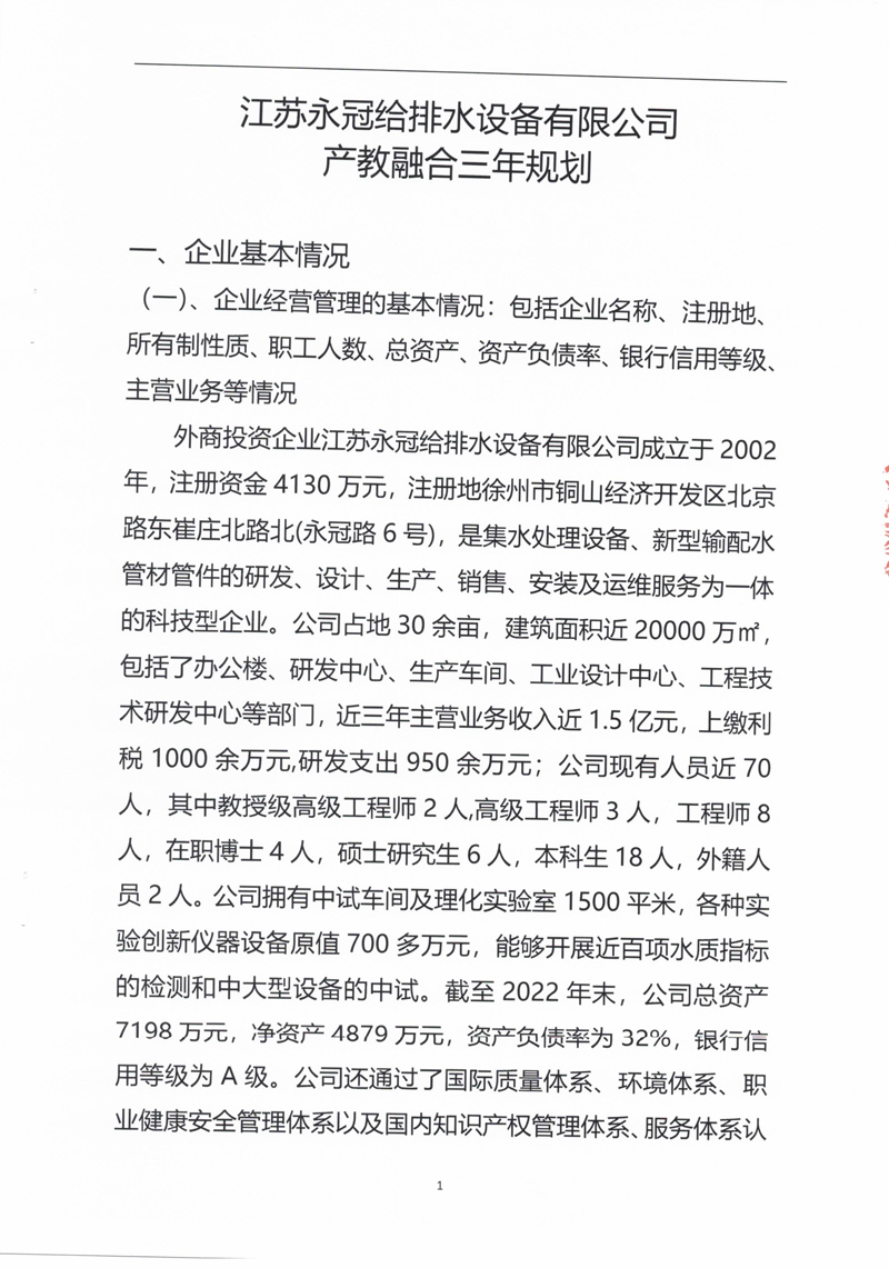 江苏永冠以“科技引导,创新发展,注重人才,规范管理”为理念,在不断强化科研投入的同时,大力开展人才引进培养和运营管理的规范化标准化。